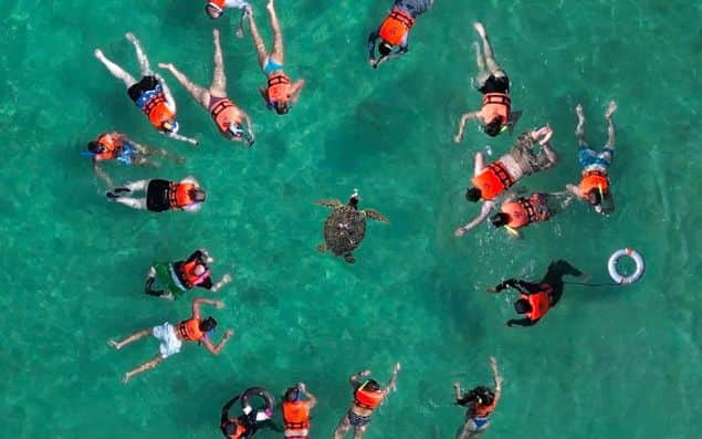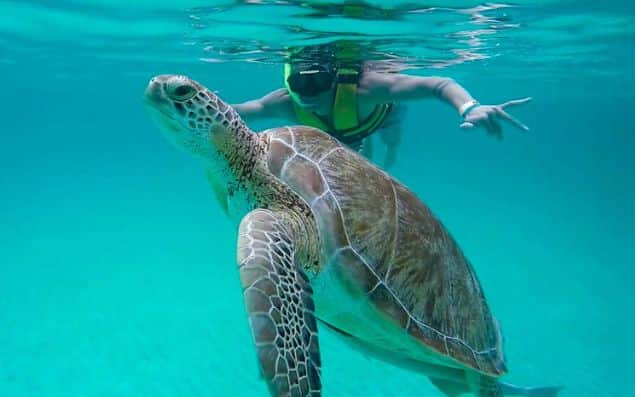 Después de conocer el santuario, la aventura continúa en la playa para nadar en aguas cristalinas donde es común ver tortugas, peces tropicales y arrecifes.