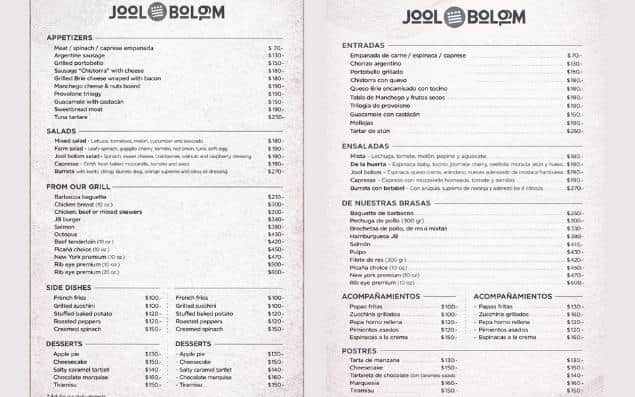 Jool Bolom se distingue por su enfoque en la cocina a las brasas, donde el sabor se construye con fuego, técnica y una selección pensada para los amantes de la parrilla. El corazón del concepto son sus cortes de carne premium, preparados al punto para resaltar lo mejor de cada pieza: jugosidad, textura y carácter. Es el tipo de restaurante donde cada bocado te recuerda por qué una buena parrilla nunca falla.
