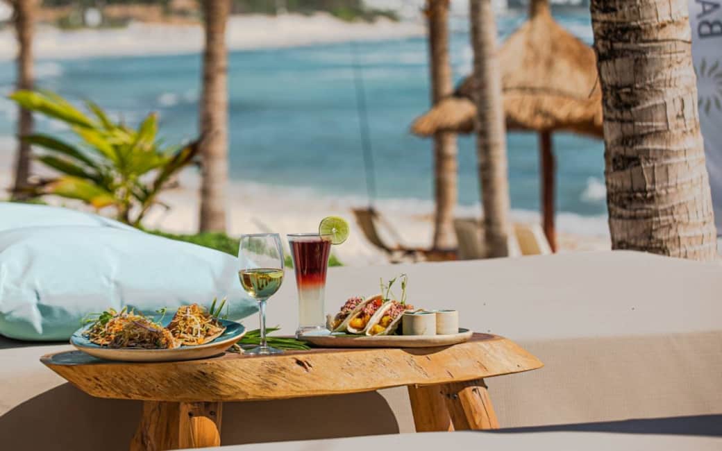 El menú de KAY Beach Club está inspirado en la cocina caribeña y presenta una atractiva combinación de mariscos frescos, platillos mexicanos y opciones internacionales, elaborados con ingredientes de alta calidad y productos locales de temporada.